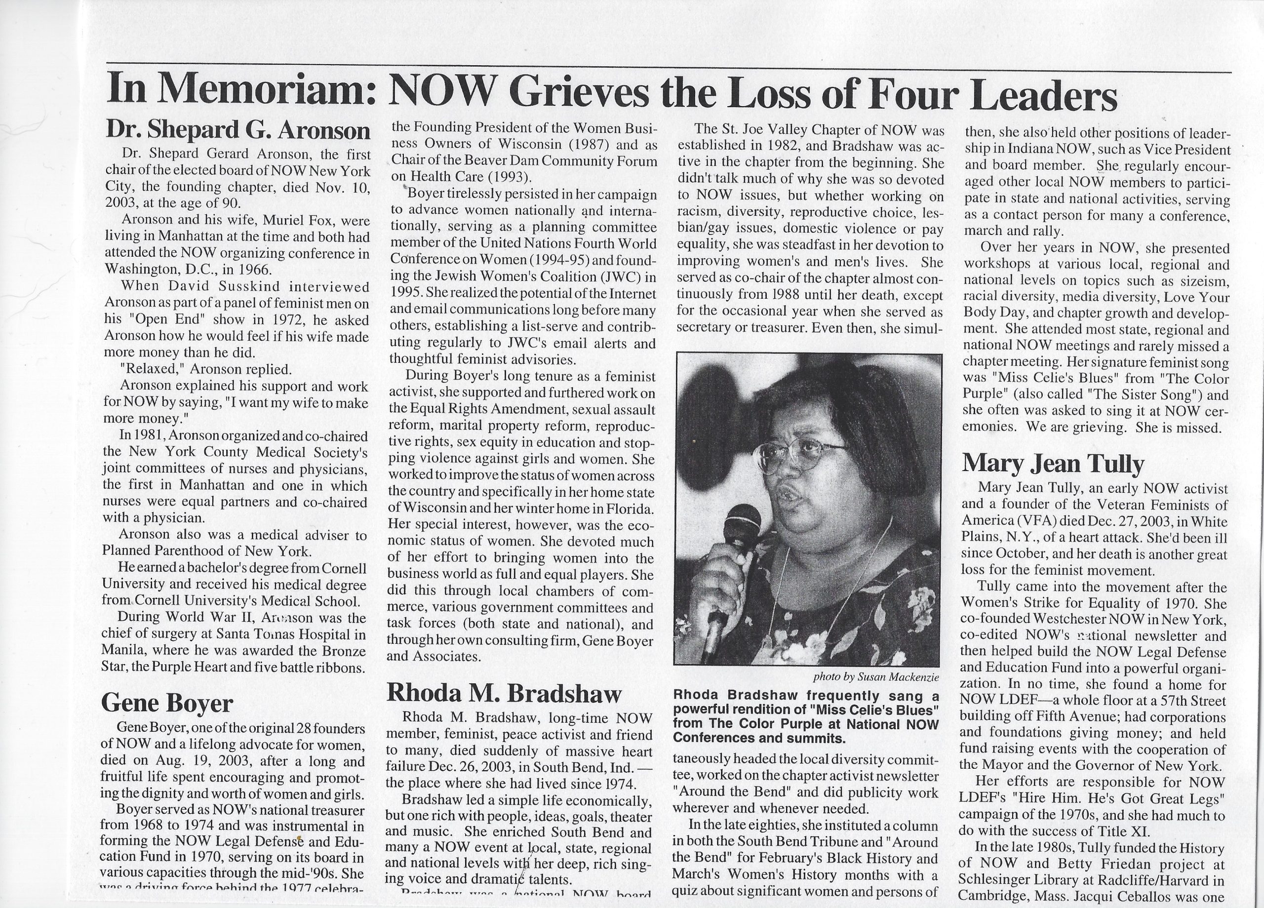 - In Memoriam: NOW Grieves the Loss of Four Leaders