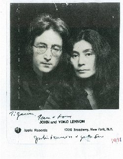 As we were leaving the studio, I remembered my daughter's plea. And picking up a photo of the two, Yoko wrote "To Janine, Peace and love, from Yoko Ono and John Lennon." Imagine!